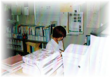 | B学芸課は、美術館の展示展などの企画を練る、美術館のシンクタンク。書類の山の中で、今日もスタッフが研究に明け暮れる。 C総務課は、学芸課で練りに練られた知恵の詰まったイベントを実行に移す実務を請け負う精鋭たちだ。学芸課と総務課の二人三脚で美術館は今日も生き生きしている。 その他、書庫や、図書室などを |