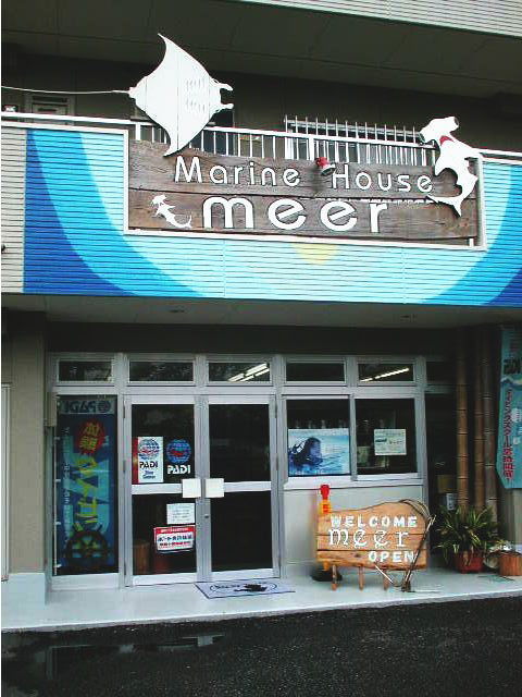 meerは、ドイツ語で海という意味です。この名前をつけた理由は、店長さんはこの言葉がきれいだったから。お店に来るお客さんは、中学生から70歳までと幅広く、また、ダイバーのライセンスを取る人は、18歳から60歳までと一年に約80人もいるそうです。 海に魅せられた店長さん |