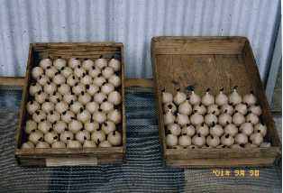 (7) 花火屋さんから受け取った火薬の数々。これらを(その7)の竹筒に詰める。どんな仕掛けがあるかは、ハゼてからのお楽しみ・・・。 |